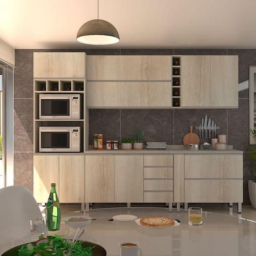 Uma cozinha modulada completa para deixar seu ambiente super aconchegante e requintado. Cuidadosamente pensadas para sua organizacao, a Cozinha Lis conta com acessorios requintados como puxadores em perfil aluminio tipo gola, corredicas metalicas telescopicas para abertura total das gavetas e dobradicas slow motion permitindo o fechamento mais suave das portas.