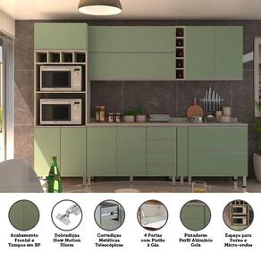 Cozinha Completa 7 Peças com Tampo Lis Luciane Móveis - Verde