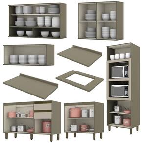 Cozinha Completa 7 Peças Connect Duna/cristal Com Torre Quente E Aéreo Vidro - Móveis Henn Duna/cristal