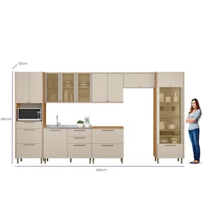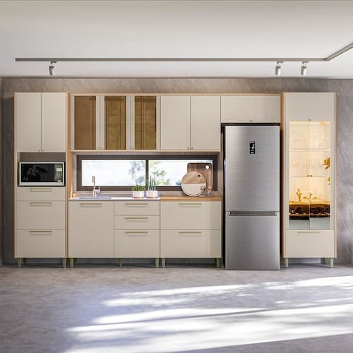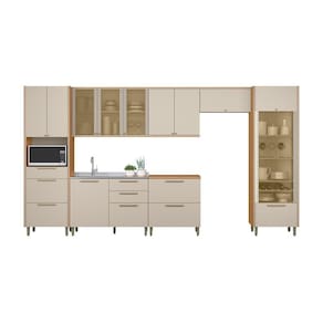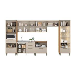 A Cozinha Atena é composta por 7 módulos que combinam perfeitamente design moderno e elegância. Produzida em 100% MDF, oferece alta durabilidade e um acabamento de qualidade superior. O projeto conta com dobradiças com sistema de amortecimento, além de um aéreo de 1,20 m com porta de vidro reflecta e detalhe canelado, que adicionam um toque sofisticado ao ambiente. O conjunto inclui uma cristaleira belíssima, equipada com garrafeiro e iluminação em LED, além de uma torre funcional, ideal para quem precisa de mais espaço de armazenamento. Os módulos inferiores oferecem gavetas amplas, que garantem praticidade e organização no dia a dia. Uma escolha perfeita para quem procura uma cozinha funcional, charmosa e cheia de estilo.