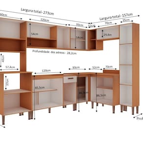 Acabamento Pintura UV. Acabamento da Prateleira: Pintura Escala de Brilho da Prateleira: Brilhante Acabamento da Gaveta: Pintura Escala de Brilho da Gaveta: Brilhante Material do Puxador da Gaveta: ABS Acabamento da Porta: Pintura Escala de Brilho da Porta: Brilhante Material do Puxador da Porta: Plástico Acompanha Rodapé Decorativo: Sim Acompanha Tampo: Não Ambiente Principal: Cozinha Balcão Suporta Pia: Sim codigo_ean: 7900288177353 Complexidade da Montagem: Média: pode ser montado por mais de uma pessoa e/ou necessite de maior conhecimento para montagem Cor: Freijo/White laca Cor do Produto: Freijó/White Laca Cor Flex: Não Cor Interna: Branco Escala de Brilho: Brilhante Espessura do Material da Estrutura: 12 mm Gaveta com Chave: Não Informações Complementares: Cozinha Completa 100% MDF 8 Peças 15 Portas com Torre Quente Itens Inclusos: 1 Cozinha, Kit Ferragens e Manual de Montagem Linha ou Coleção: Essência Manual de Montagem e Instalação: https://product-hub-prd.madeiramadeira.com.br/843916195/documents/3144ae81-7f08-48bd-8135-0d2042e340bc29767807341749064629622.pdf Marca: Genialflex Material da Corrediça: Metálica Material da Dobradiça/Corrediça da Porta: Metálica Material da Gaveta: MDF Material da Porta: MDF Material da Prateleira: MDF Material do Fundo: mdf Medida de cada item (A x L x P): Torre Forno e Micro (200x60x52) Aéreo de 120cm( 54x120x28,2) Balcão de 120cm( 85,5x120x52) Aéreo de Canto Reto( 54x93x28,2) Balcão de Canto Reto ( 86,5x93x52) Aéreo basculante( 29,8x70x28,2) Balcão de 2 portas ( 86,5x70x52) Paneleiro 1 Porta (200x35x28,2) modular: Sim Montagem Flex: Sim, os módulos podem ser posicionados em lugares diferentes. Necessita Montagem: Sim O Balcão Acompanha Pia: Não Origem do Produto: Nacional Peso: 179,06 kg Peso Máximo por Gaveta: 4 kg Peso Máximo por Prateleira: 4 kg Possui Pés: 21 Possui Portas: Sim Possui Prateleiras: Sim Possui recorte para Cooktop: Não Possui Vidro: Não Produto Montado: Sim Recomendações de Uso, Manutenção e Limpeza: Limpar com pano umedecido e numero das peças retirar com alcool Sistema de Montagem: Parafusos e Cavilhas Suporta Até (kg): 80 kg Tamanho Indicado da Pia: 120 Tamanho Indicado do Tampo: 120 Tipo de Corrediça da Gaveta: Simples Tipo de Dobradiça da Porta: Simples Tipo de Dobradiça/Corrediça da Porta: Simples Tipo de Puxador da Gaveta: Externo Tipo de Puxador da Porta: Externo