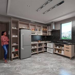 Desenvolvida com materiais de excelencia, a Cozinha Stylo oferece excelente distribuicao de espaco interno. E estruturada em 100 MDP e possui dobradicas slow motion com amortecedor incorporado para fechamento suave das portas. Conta com puxadores tipo aste em Aluminio Preto dando um toque especial de classe e elegancia.