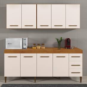 Cozinha Completa 9 Portas E 3 Gavetas Atenas Kaiki Moveis Nature/off White