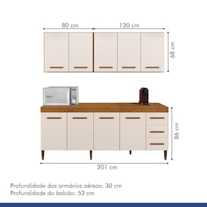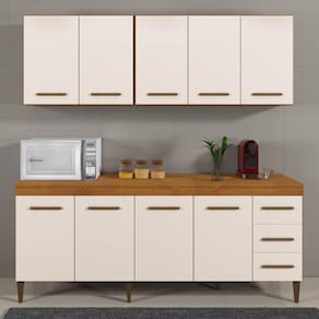Na hora de mobiliar o seu cômodo de chef você não precisa comprometer a decoração para ter um móvel funcional e que acomode todos aqueles itens essenciais. A Cozinha Atenas não só está preparada para deixar o cômodo com um visual incrível, mas também vai ser a aliada perfeita para armazenar louças, utensílios, alimentos e eletrodomésticos de forma funcional. Já por fora, a peça tem acabamento charmoso com puxadores discretos que ajuda a trazer um toque especial ao ambiente, enquanto as cores versáteis agregam muito à estética dessa peça primorosa. Muito bom gosto para o seu lar-style!Cozinha Completa 9 Portas e 3 Gavetas Atenas Escala de Brilho: Semi-Brilho Origem do Produto: Nacional Ambiente Principal: Cozinha Altura: 211cm Largura: 201cm Profundidade: 53cm Peso: 105,9cm Acabamento: Pintura UV Material Principal: MDP Possui Portas: 09 Material da Porta: MDP Acabamento da Porta: Pintura Escala de Brilho da Porta: Semi-Brilho Tipo de Porta: Bater Tipo de Puxador da porta: Externo Material do Puxador da Porta: MDF Tipo de Dobradiça da Porta: Aço Possui Prateleiras: 05 Material da Prateleira: MDP Acabamento da Prateleira: Pintura Texturizada UV Escala de Brilho da Prateleira: Semi-Brilho Peso Máximo por Prateleira: 10 Possui Gavetas: 03 Gaveta com Chave: Não Material da Gaveta: MDP Acabamento da Gaveta: Verniz Escala de Brilho da Gaveta: Semi-Brilho Tipo de Corrediça da Gaveta: Metálica Telescópica Tipo de Puxador da Gaveta: Externo Material do Puxador da Gaveta: MDF Peso Máximo por Gaveta: 10 Possui Pés: 08 Altura dos Pés: 17cm Material dos Pés: Plástico Acabamento dos Pés: Pintura Possui Rodízio: Não Pés Reguláveis: Sim Acompanha Tampo: Sim Material do Tampo: MDP O Balcão Acompanha Pia: Não Estilo: Moderno Recomendações de Uso, Manutenção e Limpeza: Recomendamos que a limpeza seja feita apenas com pano umedecido. Sistema de Montagem: Parafusos. Sistema de Montagem: Parafusos. Itens Inclusos: 1 Cozinha e manual de montagem. Quantidade de Peças: 03 Medida de cada item (A x L x P): Balcão - 86cm x 201cm x 53cm Aereo 2 Portas - 68cm x 80cm x 30cm Aereo 3 Portas - 68cm x 120cm x 30cm