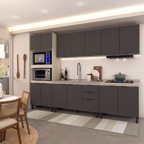 O(a) Cozinha Completa Alice 14 Portas 2 Gavetas Grafite/Marrom - Loja é produzido em MDP na escala de brilho Brilho, Fosca com Textura e Fosco, e possui um grau de dificuldade de montagem: Médio.