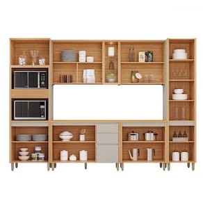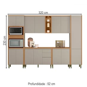 O(a) Cozinha Completa Allure 15 Portas 3 Gavetas 100% Mdf Jequitibá/Gris - Linea Brasil é produzido em 100% MDF na escala de brilho Impressão UV, e possui um grau de dificuldade de montagem: Médio.