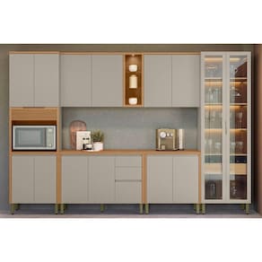 Cozinha Completa Allure 6 Peças (2Aéreos+2Balcões+1Cristaleira+1TorreQuente) CP17 Jequitiba/Gris Fosco - Linea Brasil