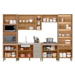 Cozinha Completa Allure 6 Peças (2Aéreos+2Balcões+1Cristaleira+1TorreQuente) CP17 Jequitiba/Gris Fosco - Linea Brasil - Blush
