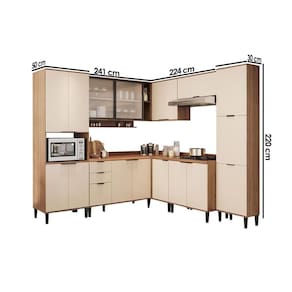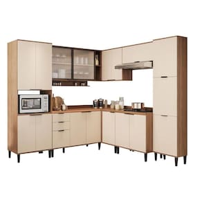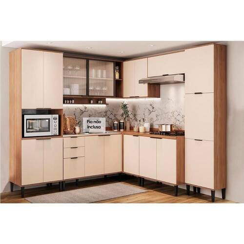 Cozinha Completa Alpha 8 Peças (3Aéreos+3Balcões+1Paneleiro+1TorreQuente) C8P61 Freijo/Off White - Carraro