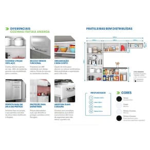 Com design clean e moderno, os módulos da linha Amanda se adaptam facilmente a diferentes tamanhos e estilos de cozinha, oferecendo um ótimo aproveitamento do espaço.