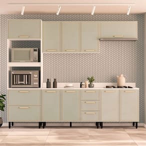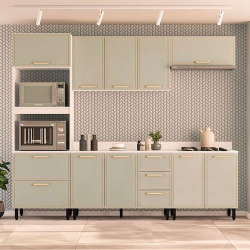 Cozinha Completa Amara 10 Portas 4 Gavetas 40250091 Branco/Verde Oliva - Politorno