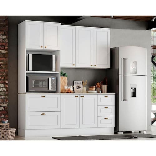 Balcão de Cozinha Americana p/ Pia c/3 Gavetas e 2 Portas s/Tampo 120cm Branco - Henn