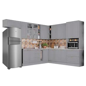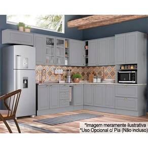 Cozinha Completa Americana 16 Peças (6 Armários + 1 Paneleiro + 5 Balcões + 4 Complementos) C5P38 Cinza - Henn