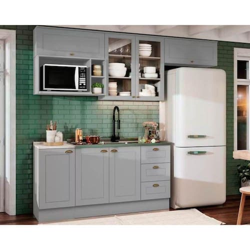 Cozinha Completa Americana 7 Peças (4Aéreos+2Balcões+1Complemento) s/Pia CZ140 Cinza - Henn Abaixo segue os produtos que compoem o KIT: