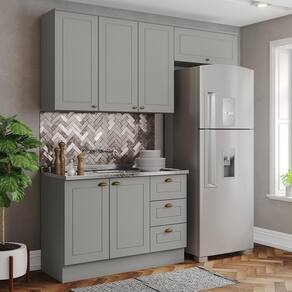 Cozinha Completa Americana 3 Peças Cinza - Móveis Henn Cinza Cozinha Completa Americana 3 Peças - Móveis Henn Com design contemporâneo, a Cozinha Americana embeleza qualquer ambiente. Seu conceito é inspirado nas clássicas cozinhas estilo americano, oferecendo uma decoração moderna e minimalista. Ela conta com puxadores em metal zamac, dobradiças 35mm com amortecimento e espaçosos aéreos com 83cm de altura, proporcionando praticidade e funcionalidade. É um armário de cozinha 100% MDF com mais de 15 módulos, que possibilitam criar o projeto de cozinha dos seus sonhos. ESPECIFICAÇÕES: - Estrutura 100% MDF - Pintura UV - 6 Portas, sendo 1 basculante - 3 Gavetas - Dobradiças de 35mm com amortecimento - Corrediças telescópicas - Puxadores em zamac ouro velho - Tampos em MDP/BP - Opção de instalação sem rodapés, suspensa - Balcão Pia não acompanha cuba e tampo