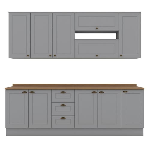Com design contemporâneo, a Cozinha Americana embeleza qualquer ambiente. Seu conceito é inspirado nas clássicas cozinhas estilo americano, oferecendo uma decoração moderna e minimalista. Ela conta com puxadores em metal zamac, dobradiças 35mm com amortecimento e espaçosos aéreos com 83cm de altura, proporcionando praticidade e funcionalidade. É um armário de cozinha 100% MDF com mais de 15 módulos, que possibilitam criar o projeto de cozinha dos seus sonhos.
