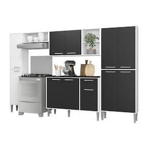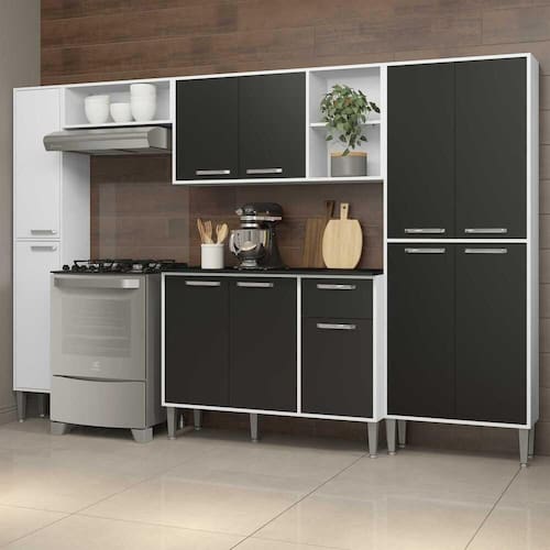 Conteúdo da Embalagem: 1 (um) nicho horizontal 1 (um) armário aéreo de 105 cm 1 (um) paneleiro duplo 1 (um) balcão com tampo de 105 cm 1 (um) paneleiro simples 1 (um) balcão com tampo de 70 cm 1 (um) armário aéreo de 70 cm