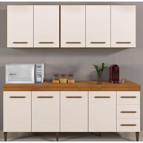 Cozinha Completa Atenas 9 Portas 3 Gavetas Kaiki Móveis - Nature/off - Branco