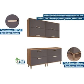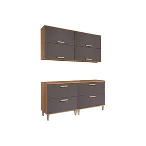 Cozinha Completa Bella 4 Peças 2 Aéreos 2 Balcões 160cm Freijó Titanium - Cinza