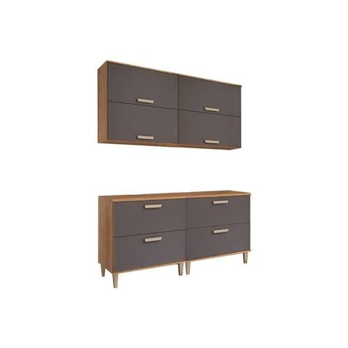 Cozinha Completa Bella 4 Peças (2Aéreos+2Balcões) 160cm Freijo/Titanium - MGM