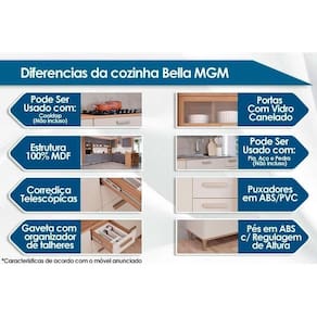 Abaixo segue os produtos do KIT: Cozinha Completa Bella 4 Peças (2Aéreos+2Balcões) 160cm Freijo/Titanium - MGM