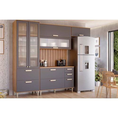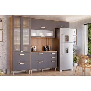 Cozinha Completa Bella 5 Peças (2Aéreos+1Balcão+1Paneleiro+1Complemento) CZ016 Freijo/Titanium - MGM Abaixo segue os produtos que compoem o KIT: