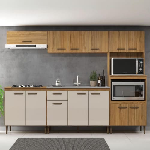 A Linha Berlim foi desenvolvida para facilitar o seu dia a dia, com manuseio ergonômico e amplo espaço de armazenamento. Nessa coposição com quatro peças em 2,7m de largura e 2m de altura. Sua distribuição de espaços para facilitar o acesso aos produtos, eletrodomésticos e utensílios. Tem espaço para cooktop de até 5 queimadores e espaço para pia de 1,20m. Possui portas com puxador em ABS na cor champagne e detalhe decorativo. Seus pés possuem detalhe hexagonal e regulagem de altura para melhor nivelamento. Confira as demais peças da Linha Berlim e monte sua cozinha ideal.