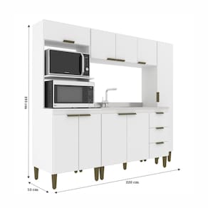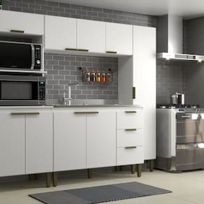 Cozinha Bia 4 peças J Carvalho na cor Branco 193 cm de altura composta por 9 portas e três gavetas sendo 8 das portas de bater e 1 basculante. Com dobradiças e corrediças metálicas, espaço para micro A41 X L60 X P45 e Forno A41 X L60 X P 53. Seu ambiente vai ficar muito mais lindo com a nossa cozinha Bia. Acabamento da Prateleira: Finish Foil Escala de Brilho da Prateleira: Fosco Acabamento da Gaveta: Finish Foil Escala de Brilho da Gaveta: Fosco Material do Puxador da Gaveta: Plástico Acabamento da Porta: Finish Foil Escala de Brilho da Porta: Fosco Material do Puxador da Porta: Plástico Acabamento dos Pés: Polipropileno Acompanha Rodapé Decorativo: Não Acompanha Tampo: Não Altura dos Pés: 17 cm Altura Máxima dos Pés: 17.0000 Ambiente Principal: Cozinha Balcão Suporta Pia: Sim codigo_ean: 7900288004512 Complexidade da Montagem: Média: pode ser montado por mais de uma pessoa e/ou necessite de maior conhecimento para montagem Cor: Branco Cor do Produto: Branco Cor Flex: Não Cor Interna: Branco Escala de Brilho: Fosco Espessura do Material da Estrutura: 15 mm Gaveta com Chave: Não Itens Inclusos: 1 Cozinha completa + kit ferragem + manual QR Code impresso na embalagem e no kit ferragem de cada item Linha ou Coleção: 2025 Manual de Especificação Técnica: https://product-hub-prd.madeiramadeira.com.br/958204/documents/bcf74d56-7c7f-42bd-9fa5-4999c813db6e2520949266217302965968418.pdf Manual de Montagem e Instalação: https://product-hub-prd.madeiramadeira.com.br/958204/documents/2374688b-6484-4f21-8cba-9711caf93ece2477837266217292717998439.pdf Marca: j carvalho Material da Dobradiça/Corrediça da Porta: Metálica Material da Gaveta: MDP Material da Porta: MDP Material da Prateleira: MDP Material do Fundo: T-HDF Material dos Pés: Polipropileno Medida de cada item (A x L x P): Balcão A87 x L120 x P52 Aéreo A42x L120 x P28 Paneleiro A193 x L37 x P28 - Torre quente A193 x L63 P53 modular: Não Montagem Flex: Não Necessita Montagem: Sim O Balcão Acompanha Pia: Não Origem do Produto: Nacional Pés Reguláveis: Sim Peso: 108,9 kg Peso Máximo por Gaveta: 7 kg Peso Máximo por Prateleira: 7 kg Possui Pés: 13 Possui Portas: Sim Possui Prateleiras: Sim Possui recorte para Cooktop: Não Possui Rodízio: Não Possui Vidro: Não Produto Montado: Sim Recomendações de Uso, Manutenção e Limpeza: Flanela umedecida Sapatas Niveladoras: Sim Sistema de Montagem: parafusos Suporta Até (kg): 120 kg Tamanho Indicado da Pia: 120X53 Tamanho Indicado do Tampo: 120X53 Tipo de Corrediça da Gaveta: Simples Tipo de Dobradiça da Porta: Simples Tipo de Puxador da Gaveta: Externo Tipo de Puxador da Porta: Externo