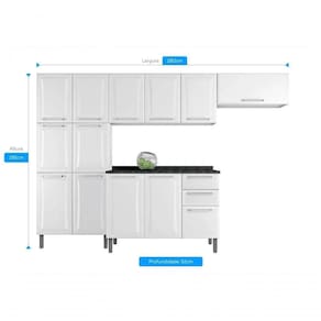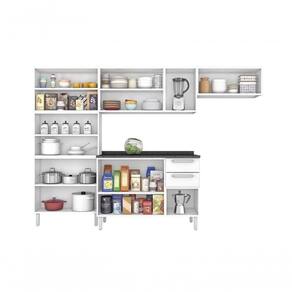 1 Paneleiro duplo2 Armários Aéreos1 BalcãoResistência à água e temperaturas de até 120?CPés reguláveisAço como principal material