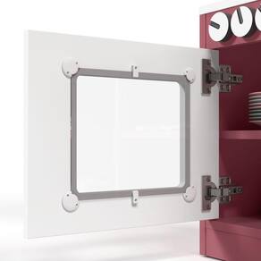CARACTERISTICAS: *Fabricado 100% em MDF 15mm *Dobradiças com amortecedores (evitar acidentes) *Material transparente em acrílico *Sistema de fixação antitombamento *Acabamento em alto brilho *Puxadores cromados em plástico *Refrigerador pode ser montado separadamente ou do lado que preferir