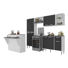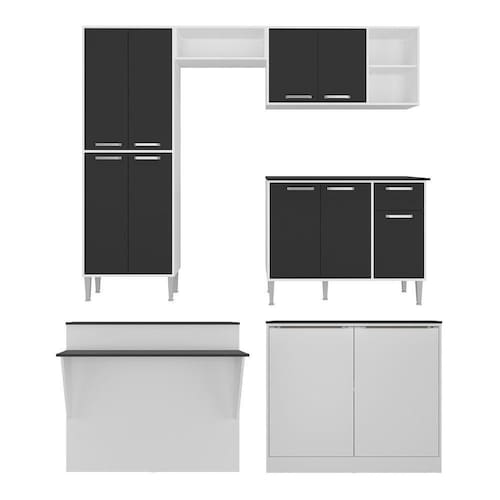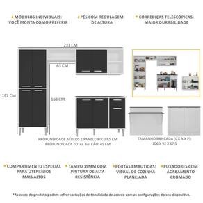 Produto Composto Por: 1 Nicho Horizontal, 1 Armário Aéreo de 105 Cm, 1 Paneleiro Duplo, 1 Balcão Com Tampo de 105 Cm, 1 Bancada, Manual de Montagem E. Kit Ferragem.