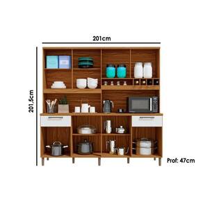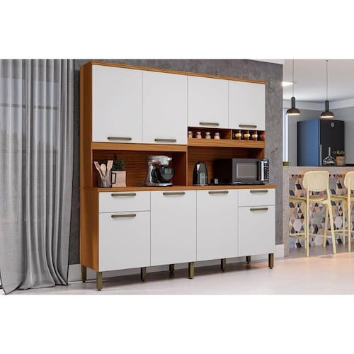 CARACTERÍSTICAS DE MÓVEIS Tipo de Estrutura do Móvel - 100% MDF Tipo de Pintura - UV Tipo de Acabamento da Pintura - Fosca Tipo de puxador - Metálico Quantidade de Prateleiras - 6 Prateleiras Quantidade de Gavetas - 4 Gavetas Diferenciais da Gaveta - c/ Corrediças Telescópicas Quantidade de Portas - 6 Portas de Abrir Quantidade de nichos - 7 nichos Diferenciais dos Nichos - Nicho Garrafeiro - Nicho p/ Microondas Garantia - 3 meses