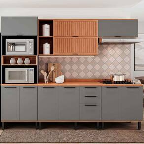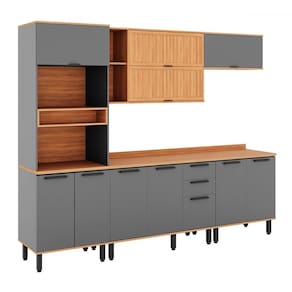O(a) Cozinha Completa Castanha 11 Portas 2 Gavetas Ripado Cinza/Freijó - Telasul é produzido em MDP na escala de brilho Semi-Brilho, e possui um grau de dificuldade de montagem: Médio.