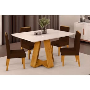 Sala de Jantar Completa Celeste Tampo Madeirado c/ Vidro Curvo 120x90cm e 4 Cadeiras Lia Cedro/Off White - Suede Moca - DJ Móveis Abaixo segue os produtos do KIT: Sala de Jantar Completa Celeste Tampo Madeirado c/ Vidro Curvo 120x90cm e 4 Cadeiras Lia Cedro/Off White - Suede Moca - DJ Móveis