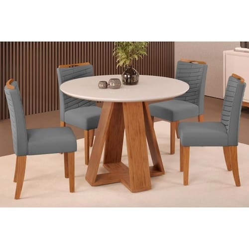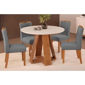 Sala de Jantar Completa Celeste Tampo Madeirado c/ Vidro Redondo 103x103cm e 4 Cadeiras Julia Freijo/Off White - Suede Lunar - DJ Móveis Abaixo segue os produtos do KIT: Sala de Jantar Completa Celeste Tampo Madeirado c/ Vidro Redondo 103x103cm e 4 Cadeiras Julia Freijo/Off White - Suede Lunar - DJ Móveis