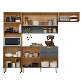 O(a) Cozinha Completa Charge 8 Portas 2 Gavetas com Vidro Amêndola/Grafito Prime Tx - Pnr Móveis é produzido em MDP na escala de brilho Fosco, e possui um grau de dificuldade de montagem: Difícil.