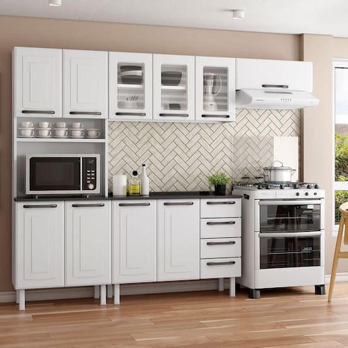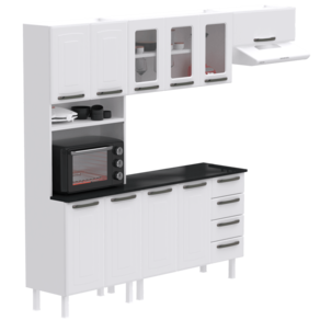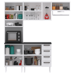 A cozinha dos seus sonhos precisa de móveis em aço. Então que tal apostar em uma cozinha completa da Linha Titanium? Ela possui estrutura 100% em aço, portas com detalhes em alto relevo, vidros temperados, além de um visual elegante e diferenciado. Sabe o que é mais legal ainda? As peças são separadas e você pode montar da maneira que seu ambiente! As medidas são 195,5 centímetros de altura, 245 centímetros de largura e 43,5 centímetros de profundidade. O balcão tem 84 centímetros de altura, 105,2 centímetros de comprimento e 43,5 centímetros de profundidade. As medidas individuais são: Torre Quente 195,5x70x43,5 e armários aéreos 52,4x105x28 e 41x70x28. Ean: 7897016836968