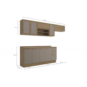 Medida de cada item (A x L x P): Aéreo: 70cm x 120cm x 34cm, Aéreo: 70cm x 80cm x 34cm, Aéreo: 35cm x 90cm x 34cm/ Balcão: 88cm x 80cm x 52cm/ Balcão: 88cm x 120cm x 52cm/ Tampo: 2,5cm x 80cm x 52cm/ Tampo: 2,5cm x 120cm x 52cm