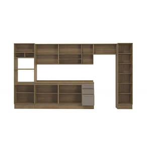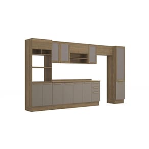 Sua cozinha completa com o Combo CB873 da Cozinha Botanic Kappesberg. Produzido em MDP de 15mm, com robustez e qualidade, o combo possui sete peças. Com prateleiras reforçadas de 25mm, o kit forno garante espaço e segurança para seus eletrodomésticos. Com tampos e rodapés, os balcões acompanham as ferragens para ser montados suspensos na parede. E com sete camadas de pintura, a caixaria é em pintura touch na cor nogueira, e as frentes são na cor cinza, com acabamento fosco. O diferencial são as corrediças telescópicas nas gavetas e as dobradiças com amortecimento, para um fechamento suave e sem ruídos, além das telinhas e molduras, que lembram a palha natural e garantem leveza ao ambiente. Seus puxadores em alumínio e polipropileno na cor dourada, completam o diferencial do produto.