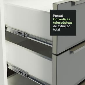 - Um (1) Balcão de 80 cm de largura com duas (2) gavetas e tampo em MDP com pintura Mood