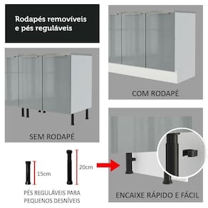 - Um (1) Balcão de pia de 120 cm com duas (2) portas (Não acompanha tampo para este balcão)