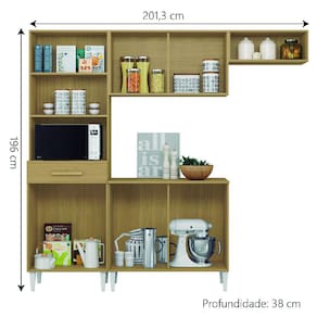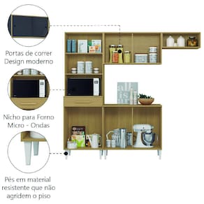 O Armário de Cozinha Completa Isabelle é perfeito para deixar sua cozinha mais harmônica e organizada. O paneleiro cheio de estilo, possui espaço para organizar os utensílios e ainda conta com nichos para micro-ondas ou forno elétrico, tornando o ambiente mais funcional e aproveitando melhor o espaço. O balcão é ideal para armazenar os mantimentos e utensílios da melhor forma. Além de possuir armário aéreo com duas portas de correr! Ideal para quem deseja praticidade e funcionalidade em qualquer ambiente. Conta com pés em material resistente que não agridem o piso.