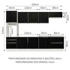 - 60 Cm de profundidade no paneleiro, na torre e nos balcões e 31 cm nos aéreos