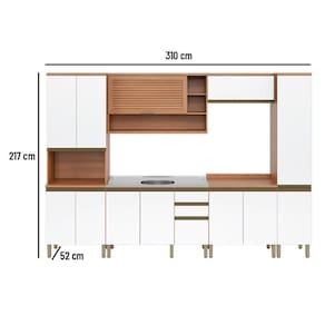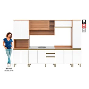 A Cozinha Completa Macadâmia possui diversas referências do móvel planejado – como a estética e funcionalidade – mas tem vantagem de ser bem mais acessível e já estar pronta, além de permitir a montagem de acordo com o seu espaço. É formada por seis módulos muito funcionais e composta por ferragens e acessórios de excelente qualidade: as portas são equipadas com dobradiças com caneco de 35mm e sistema de amortecimento slow motion – para garantir movimentos mais suaves na abertura e fechamento; já as basculantes possuem pistão a gás – um componente que garante sustentação e segurança na usabilidade. As gavetas possuem corrediças telescópicas – sinônimo de firmeza, deslizamento mais suave e abertura de extração total – e divisor de talheres. O Paneleiro é robusto e perfeito para manter micro ou forno ao alcance das mãos. Já o Paneleiro na versão mais compacta possui ótima capacidade interna para acomodação de itens variados. O Armário possui porta basculante ripada, no famoso estilo veneziano, e nichos para acomodar itens especiais. O Balcão de pia – item essencial na cozinha - conta com uma gaveta de laterais e fundos super altos, proporcionando mais segurança na organização. Completa, bonita, resistente e pronta para levar para casa. Acabamento da Prateleira: Finish Foil Escala de Brilho da Prateleira: Semi-Brilho Acabamento da Gaveta: Finish Foil Escala de Brilho da Gaveta: Semi-Brilho Material do Puxador da Gaveta: Alumínio Acabamento da Porta: Finish Foil Escala de Brilho da Porta: Semi-Brilho Material do Puxador da Porta: Alumínio Acabamento: Finish Foil Acabamento dos Pés: Polipropileno Acompanha Tampo: Não Altura dos Pés: 17 Ambiente Principal: Cozinha Complexidade da Montagem: Média: pode ser montado por mais de uma pessoa e/ou necessite de maior conhecimento para montagem Cor: Freijó/Branco Cor do Produto: Freijó/Branco Cor Interna: Freijó Escala de Brilho: Semi-Brilho Gaveta com Chave: Não Itens Inclusos: 1 Armário, kit ferragens e manual de montagem Manual de Montagem e Instalação: https://cdn2.madeiramadeira.com.br/atributo/telasul/1307623-914432-01.pdf Material da Dobradiça/Corrediça da Porta: Aço Material da Gaveta: MDP Material da Porta: MDP Material da Prateleira: MDP Material dos Pés: Polipropileno Medida de cada item (A x L x P): Paneleiro: 217 cm x 40 cm x 52 cm; Armário: 36 cm x 80 cm x 31 cm; Armário: 72,5 cm x 120 cm x 31 cm; Balcão: 92 cm x 80 cm x 52 cm; Balcão: 84 cm x 120 cm x 50,5 cm; Paneleiro: 217 cm x 70 cm x 52 cm; Necessita Montagem: Sim O Balcão Acompanha Pia: Não Origem do Produto: Nacional Pés Reguláveis: Sim Peso: 190 Peso Máximo por Gaveta: 3 Peso Máximo por Prateleira: 12 Possui Pés: 17 Possui Portas: 12 Possui Prateleiras: 11 Possui recorte para Cooktop: Não Possui Rodízio: Não Recomendações de Uso, Manutenção e Limpeza: Na limpeza, utilizar pano macio levemente umedecido em água e sabão neutro. Após, secar para evitar mofo no produto.Nunca utilizar álcool ou produtos abrasivos e, principalmente, esponjas de aço ou qualquer material que arranhe a superfície.Evitar o armazenamento de substância ácidas (sal, vinagre, limão, cebola, etc) em contato direto com o móvel. Rodízio com Trava: Não Sapatas Niveladoras: Não Sistema de Montagem: Parafuso, cavilha, prego, Minifix Suporta Até (kg): 35 Tamanho Indicado da Pia: 120 Tamanho Indicado do Tampo: Não se aplica Tipo de Corrediça da Gaveta: Telescópica Tipo de Dobradiça da Porta: Soft close Tipo de Porta: Misto (Bater e Basculante) Tipo de Puxador da Gaveta: Embutido Tipo de Puxador da Porta: Embutido
