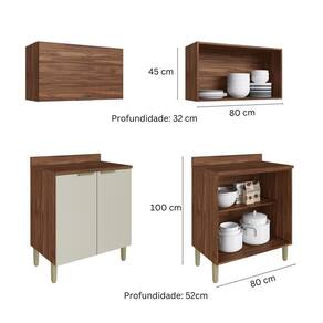 Nesta composição com paneleiro módulos de 80 cm, 120cm, canto, tampos e torre quente. Seus módulos avulsos permitem a montagem conforme a necessidade do seu ambiente.