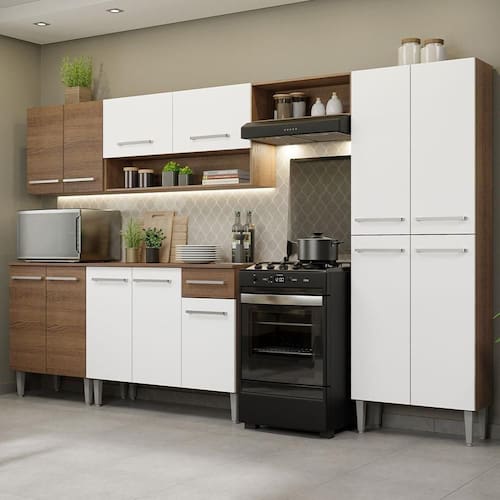 Cozinha Completa Madesa Emilly 293001 Com Armário E Balcão - Rustic/branco Rustic/branco Esta cozinha completa da linha Emilly da Madesa é funcional e moderna, perfeita para otimizar seu espaço com muita beleza e praticidade.