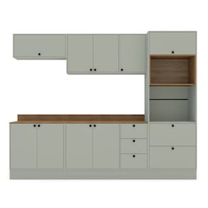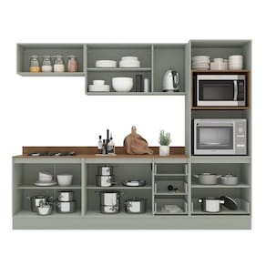 A Cozinha Rubi Yescasa é a escolha perfeita para quem busca sofisticação e praticidade no dia a dia. Com puxadores ponto que trazem um toque elegante e moderno, ela conta com acabamento em pintura UV, garantindo maior resistência, durabilidade e brilho às peças. Seu amplo espaço de 270 cm de largura, 214 cm de altura e 49 cm de profundidade oferece organização inteligente para todos os utensílios. O modelo ainda inclui torre quente, ideal para forno e micro-ondas, além de já vir com tampo, proporcionando mais comodidade na hora da montagem. Completa e funcional, essa cozinha une design, qualidade e praticidade para transformar o coração da sua casa. Acabamento da Prateleira: Pintura Texturizada UV Escala de Brilho da Prateleira: Semi-Fosco Acabamento da Gaveta: Pintura Texturizada UV Escala de Brilho da Gaveta: Semi-Brilho Material do Puxador da Gaveta: Plástico Acabamento da Porta: Pintura Texturizada UV Escala de Brilho da Porta: Semi-Fosco Material do Puxador da Porta: Plástico Acompanha Rodapé Decorativo: Sim Acompanha Tampo: Sim Ambiente Principal: Cozinha Balcão Suporta Pia: Sim codigo_ean: 7899885000235 Complexidade da Montagem: Alta: deve ser montado por um montador especializado Cor: Verde Oliva Cor do Produto: Verde Oliva Cor Interna: Verde Oliva Escala de Brilho: Semi-Brilho Espessura do Tampo: 15 mm Gaveta com Chave: Não Itens Inclusos: 1 Cozinha Completa, Kit Ferragens, Manual de Montagem e Termo de Garantia Linha ou Coleção: Rubi Manual de Montagem e Instalação: https://product-hub-prd.madeiramadeira.com.br/451291889/documents/58ef970a-b43b-4345-8bde-5d47e987a5ac3158876622417561379457102.pdf Marca: Yescasa Material da Corrediça: Alumínio Material da Dobradiça/Corrediça da Porta: Alumínio Material da Gaveta: MDF/MDP Material da Porta: MDP Material da Prateleira: MDP Material do Tampo: MDP Material dos Pés: MDP Medida de cada item (A x L x P): Balcão 81cm x 120cm x 49 cm; Aéreo 59cm x 120 cm x 29 cm; Basculante 35,7cm x 80 cm x 29cm; Torre Quente 214cm x 70cm x 49cm; Balcão 2 portas (92,5 x 80 x 49) modular: Sim Necessita Montagem: Sim O Balcão Acompanha Pia: Não Origem do Produto: Nacional Pés Reguláveis: Não Peso: 133,47 kg Peso Máximo por Gaveta: 5 kg Peso Máximo por Prateleira: 5 kg Possui Pés: Rodapé Possui Portas: Sim Possui Prateleiras: Sim Possui recorte para Cooktop: Não Possui Rodízio: Não Possui Vidro: Não Produto Montado: Sim Recomendações de Uso, Manutenção e Limpeza: Utilize um pano macio umedecido com água e sabão neutro, seguido de pano seco. Não utilize produtos químicos ou abrasivos para limpeza, pois estes danificam o revestimento do móvel. Sapatas Niveladoras: Não Sistema de Montagem: Cavilha, Parafuso, Minifix e prego. Acompanha bucha e parafuso para fixação na parede Tipo de Corrediça da Gaveta: Metálica Telescópica Tipo de Dobradiça da Porta: Soft close Tipo de Dobradiça/Corrediça da Porta: Soft Close Tipo de Puxador da Gaveta: Externo Tipo de Puxador da Porta: Externo