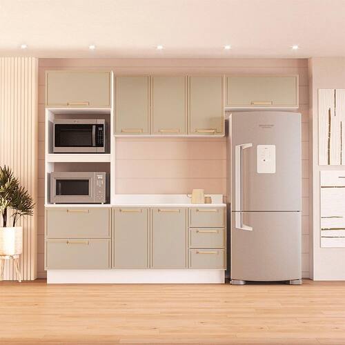 Que tal a Cozinha Completa Amara? Amplo espaço para guardar seus utensílios e um visual de encher os olhos, tudo isso você encontra na Cozinha Completa Amara. Unindo qualidade e design moderno, ela leva um ar charmoso e elegante à decoração. Enquanto isso, os materiais deixam o uso melhor e mais cômodo, já que as gavetas têm corrediças telescópicas que permitem abertura ampla e fácil - com tudo isso, o momento de preparar as refeições fica bem mais prático. Ah, como ela já acompanha tamo fechado, você ainda ganha ótimo espaço de apoio no dia a dia ;) Marca: Não Informado