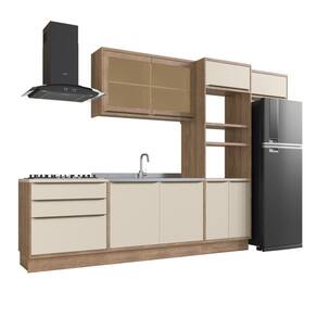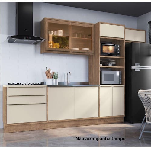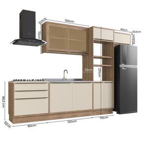 Itens Inclusos: 1 Balcão 120cm, 1 Balcão 80cm, 1 Torre Quente 70cm, 1 Aéreo 80cm, 1 Aéreo 120cm e 1 Manual de Montagem.