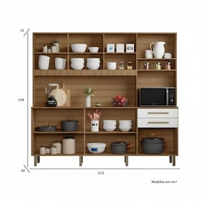 Com altura de 194 cm e profundidade de 45 cm, o Armário Ibiza é perfeito para qualquer cozinha, sendo prático e com um design moderno que se adapta a diversos estilos.